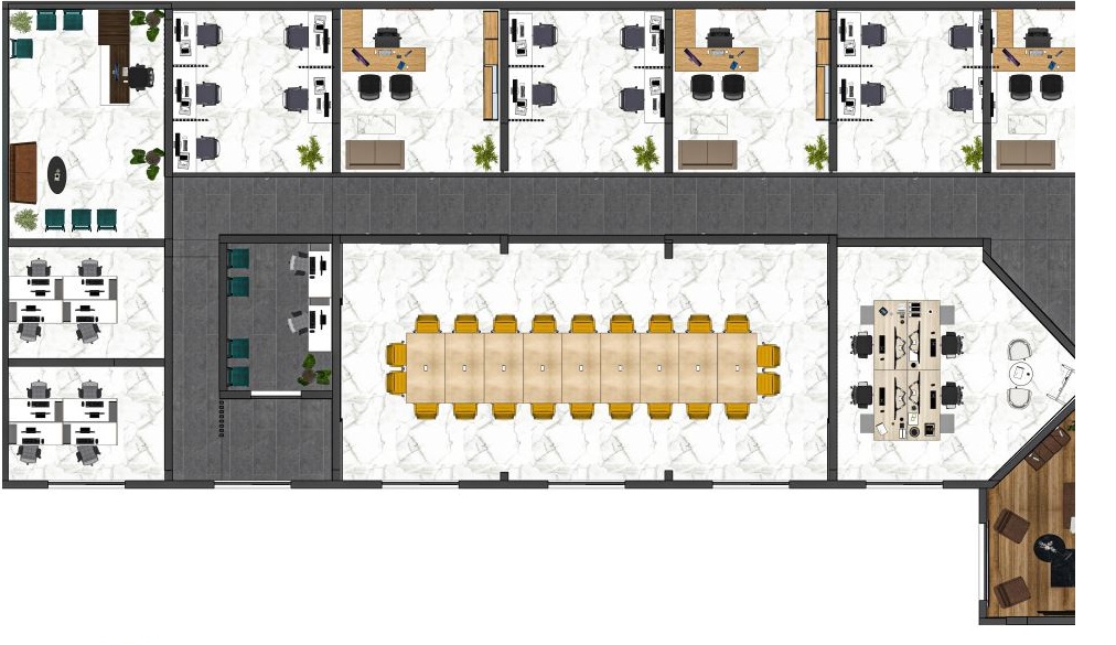 Ce projet d’aménagement intérieur propose un cadre de travail haut de gamme, moderne et ergonomique, pensé pour stimuler la collaboration, le confort et la productivité dans un environnement partagé de type co-working.